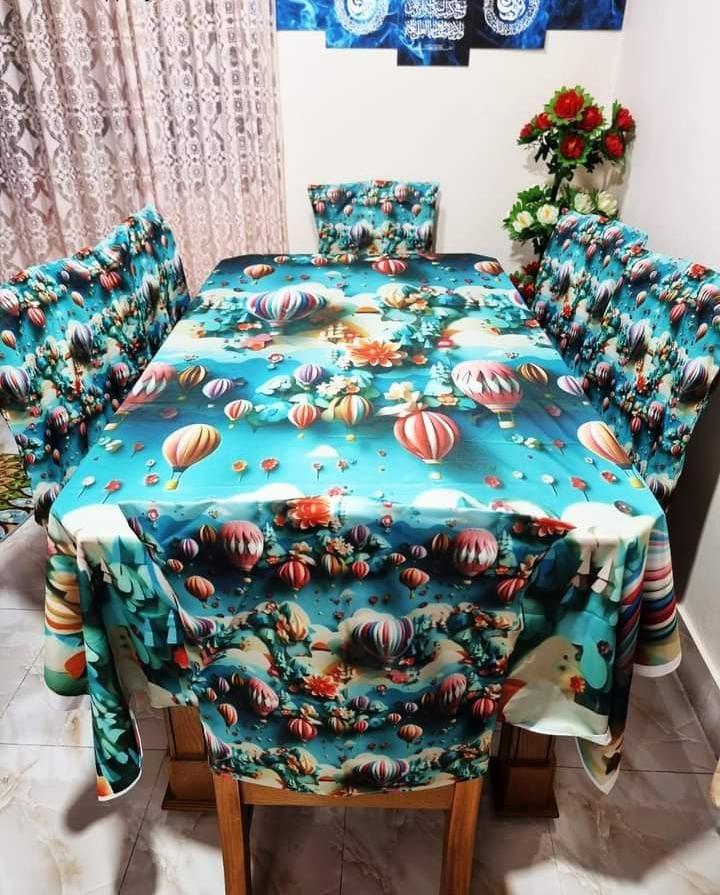 ১ পিস টেবিল ম্যট -(৬০/৮৪ ইঞ্চি-৫/৭ ফিট)৬ পিস চেয়ার কাভার -১৮/২১ ইঞ্চি