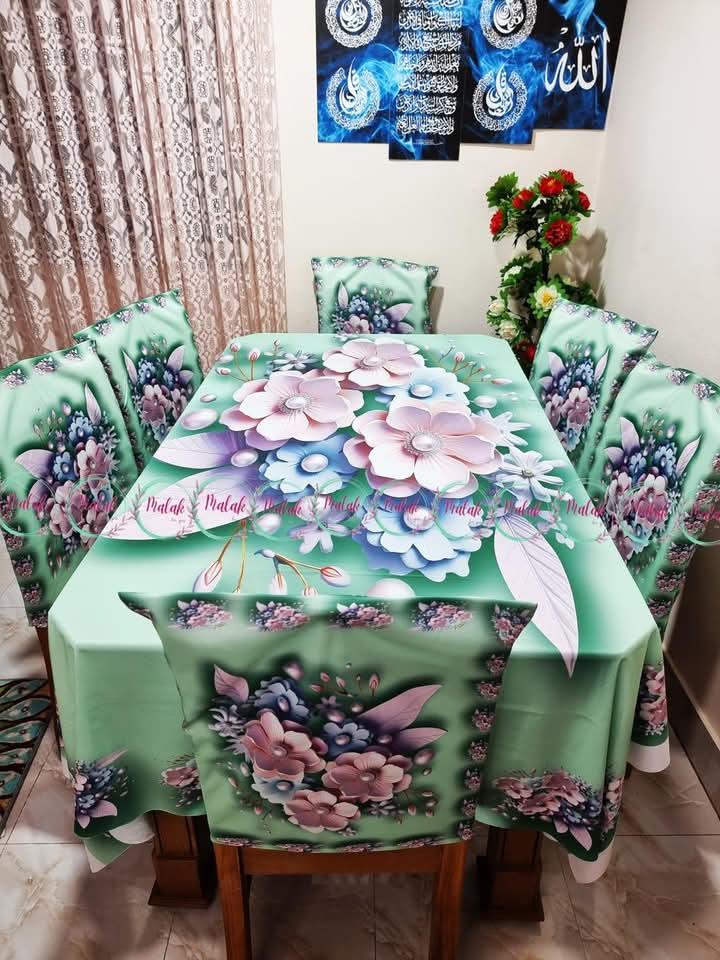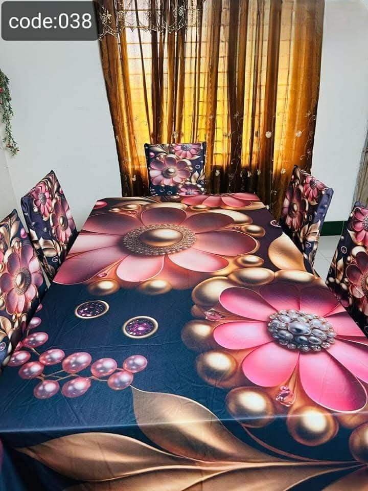 ১ পিস টেবিল ম্যট -(৬০/৮৪ ইঞ্চি-৫/৭ ফিট)৬ পিস চেয়ার কাভার -১৮/২১ ইঞ্চি