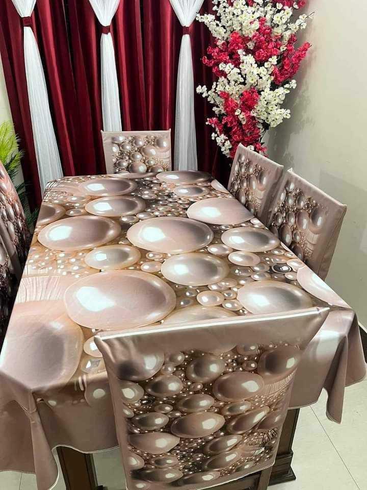 ১ পিস টেবিল ম্যট -(৬০/৮৪ ইঞ্চি-৫/৭ ফিট)৬ পিস চেয়ার কাভার -১৮/২১ ইঞ্চি