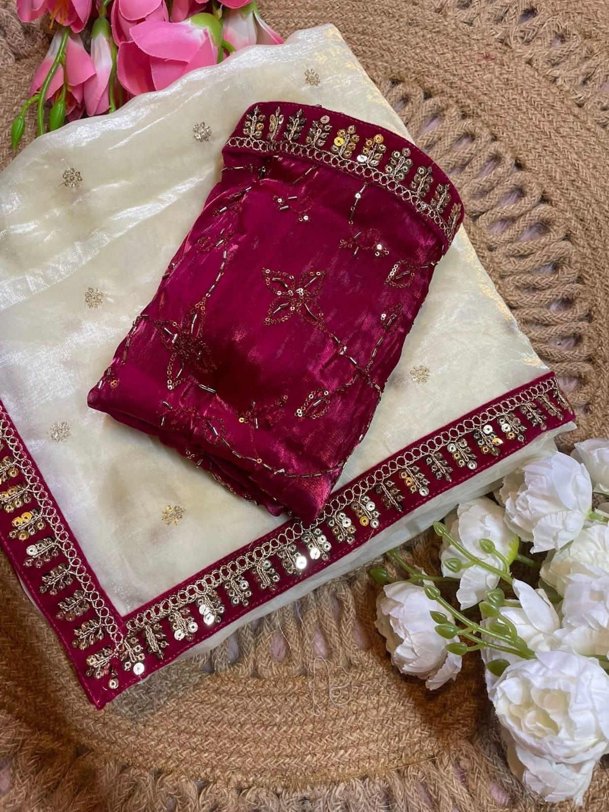 ব্লাউজ জিম্মি চু এর উপর কারচুপি+সেকুয়েন্স এর কাজ করা