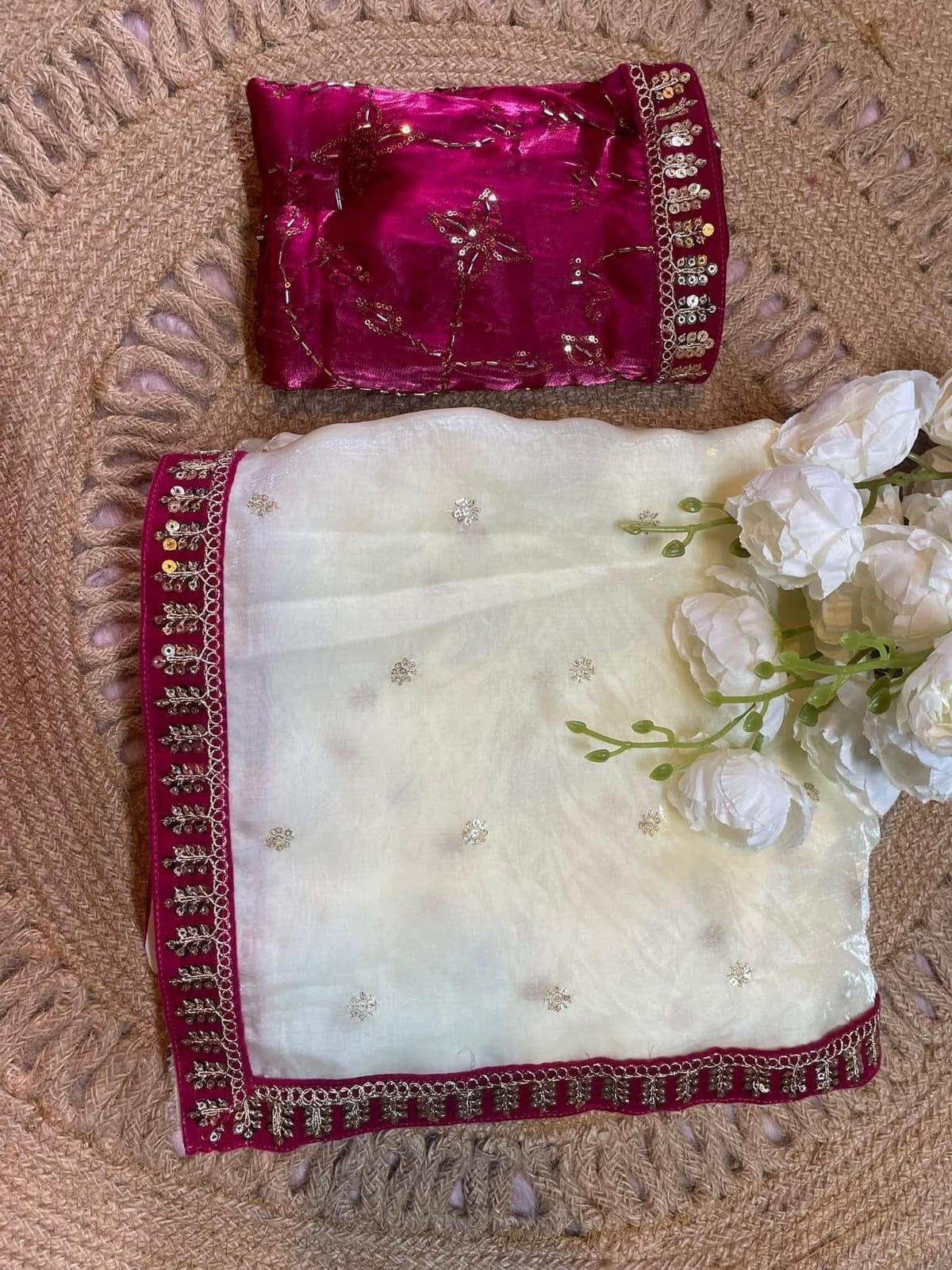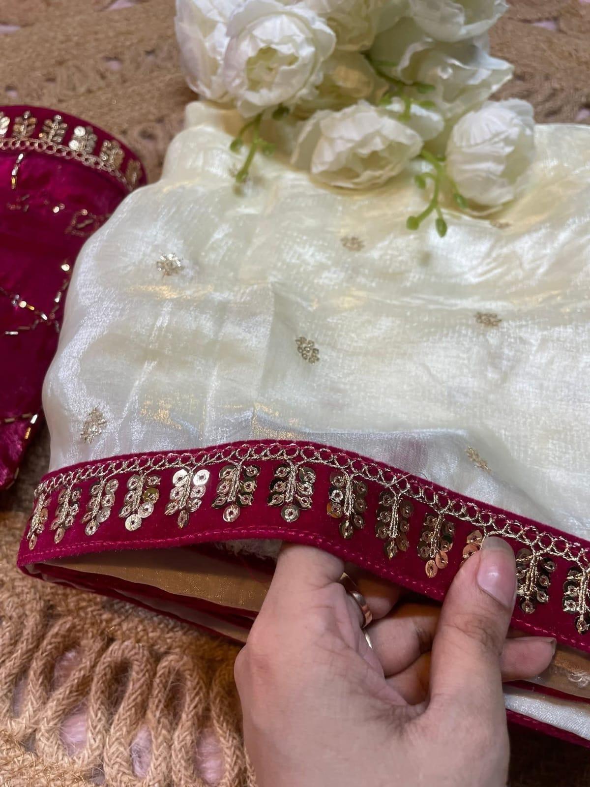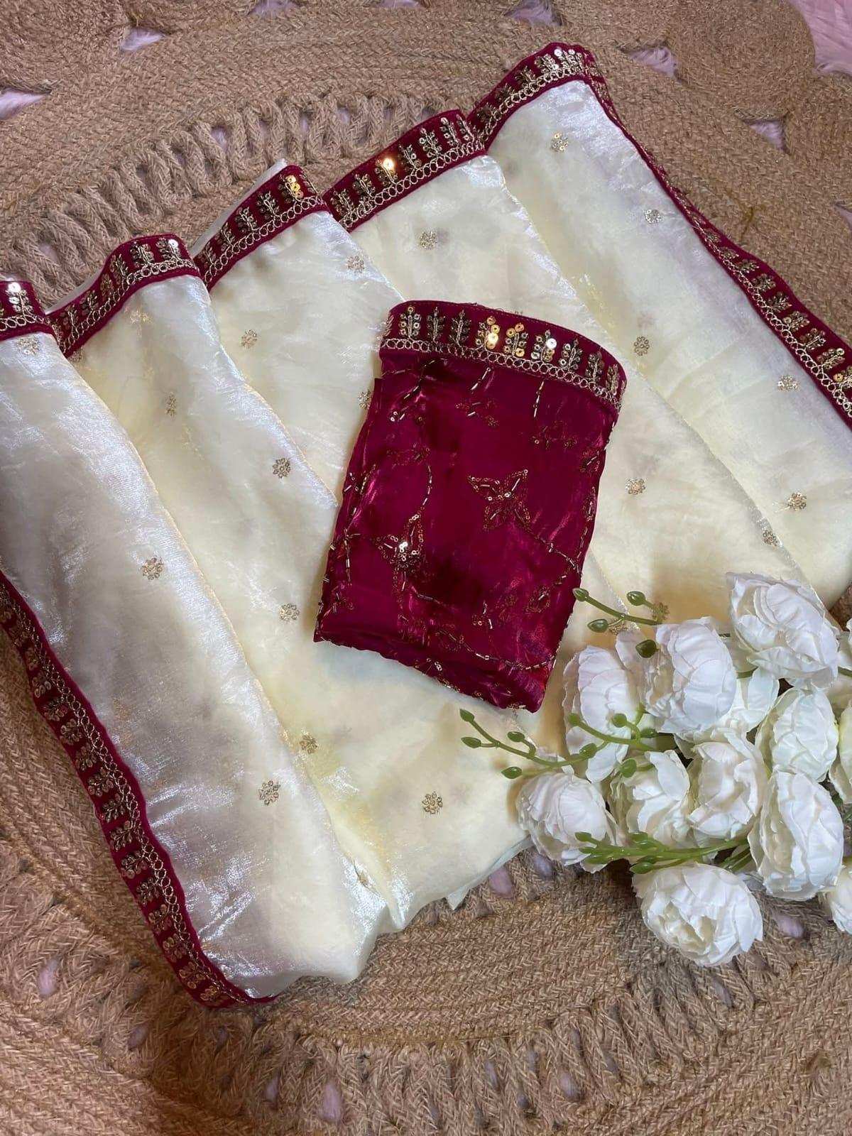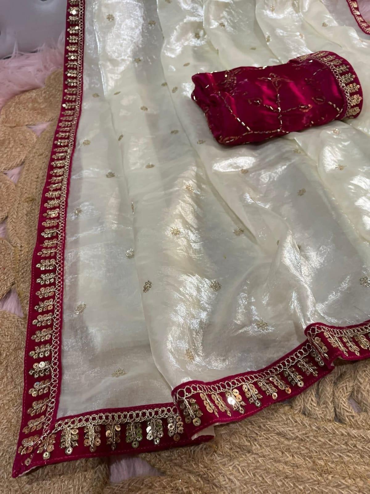 অরজিনাল জিম্মি চু এর উপর সেকুয়েন্স কাজ করা শাড়ি।
