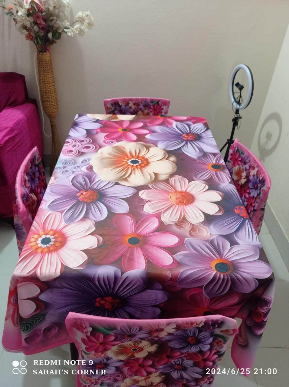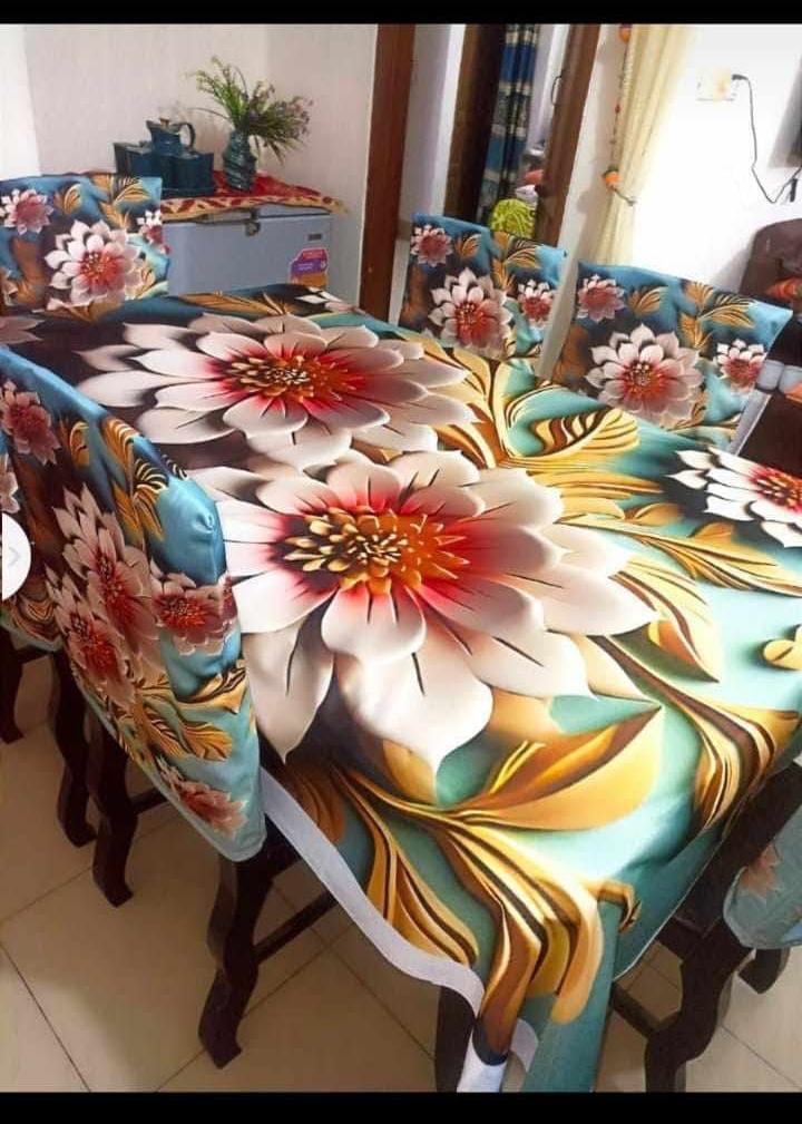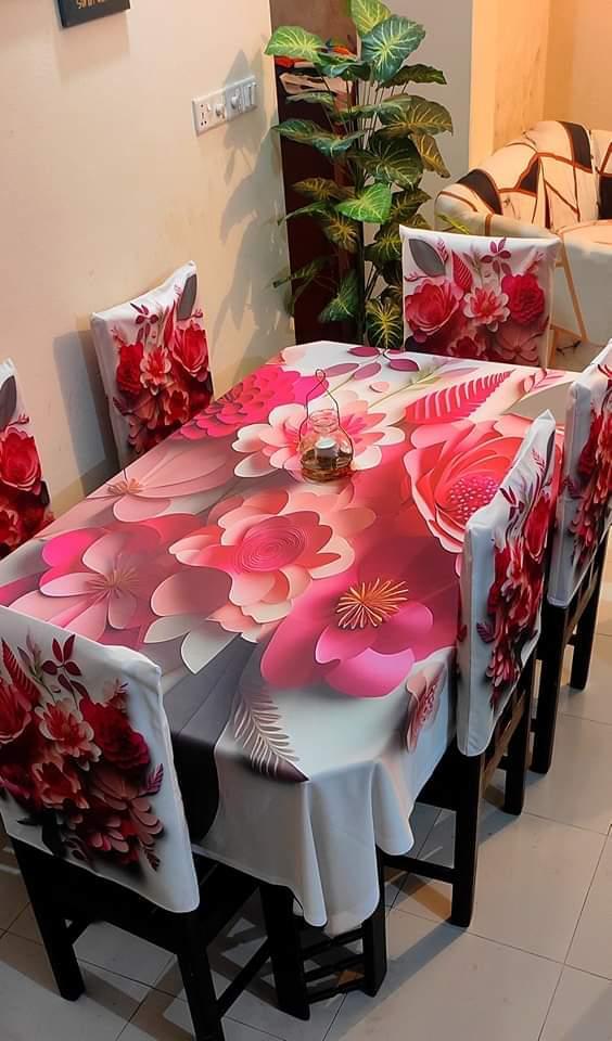 প্রিমিয়াম কোয়ালিটি ডিজিটাল 3D প্রিন্টের ডাইনিং টেবিল এবং চেয়ার কাভার সেট