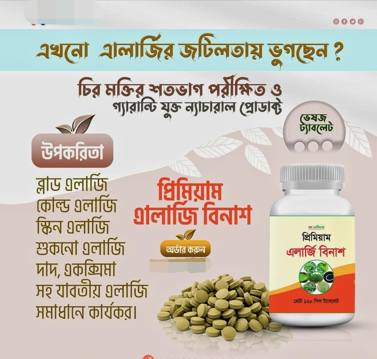 🌿 ল্যাবে পরিক্ষিত ১০০% নিরাপদ এলার্জি সমস্যা সমাধানে কার্যকর।