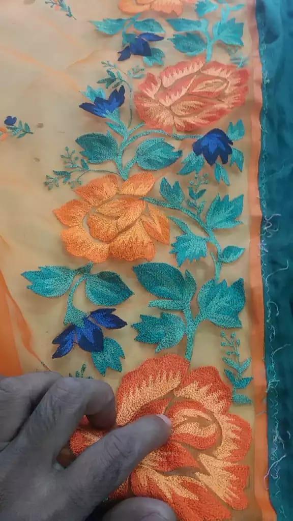 শাড়ির এমব্রয়ডারি করা হয় কারিগর দ্বারা আপনারা যে কোন ডিজাইন করতে পারবেন।