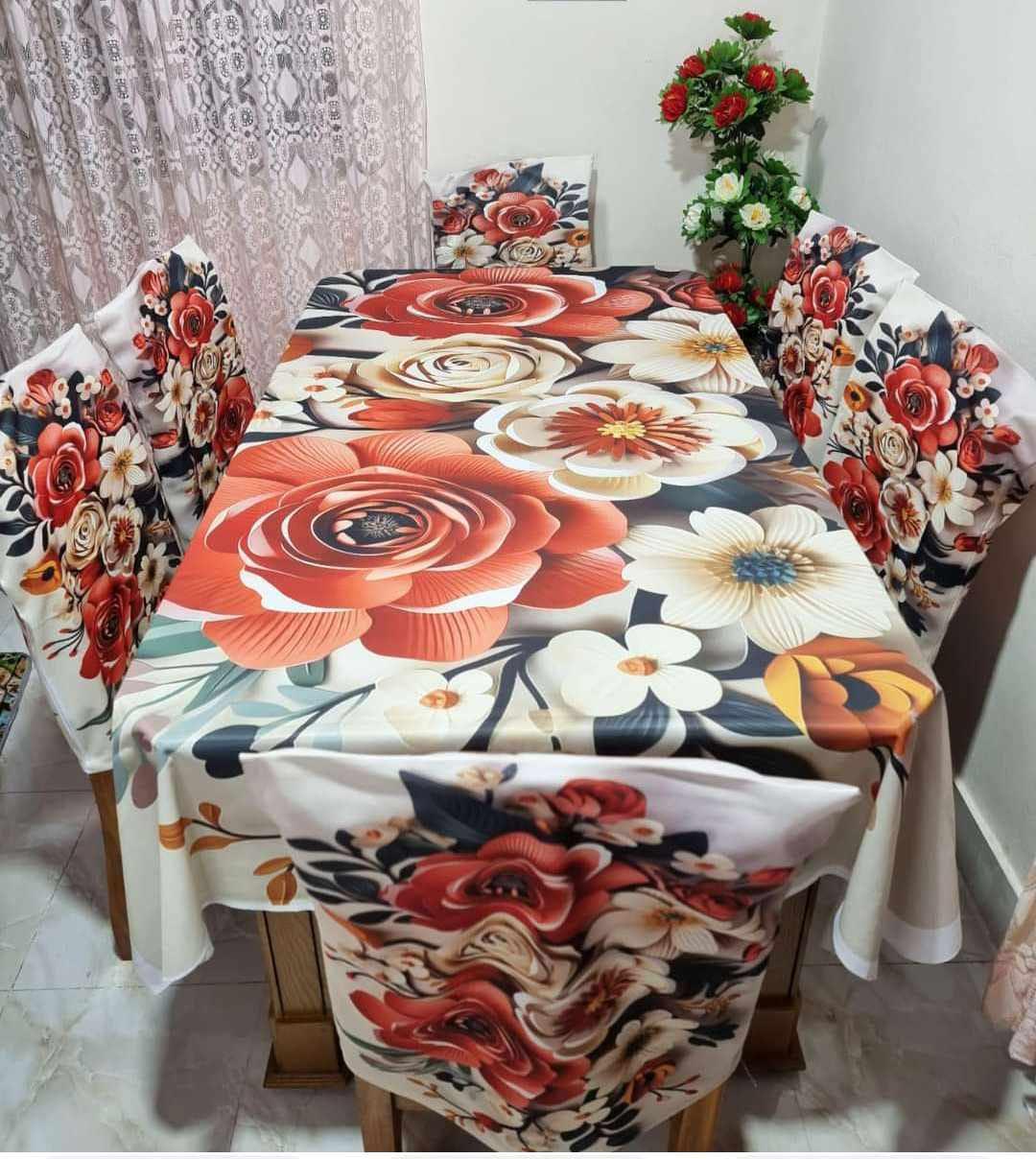 ১ পিস টেবিল ম্যট -(৬০/৮৪ ইঞ্চি-৫/৭ ফিট)৬ পিস চেয়ার কাভার -১৮/২১ ইঞ্চি