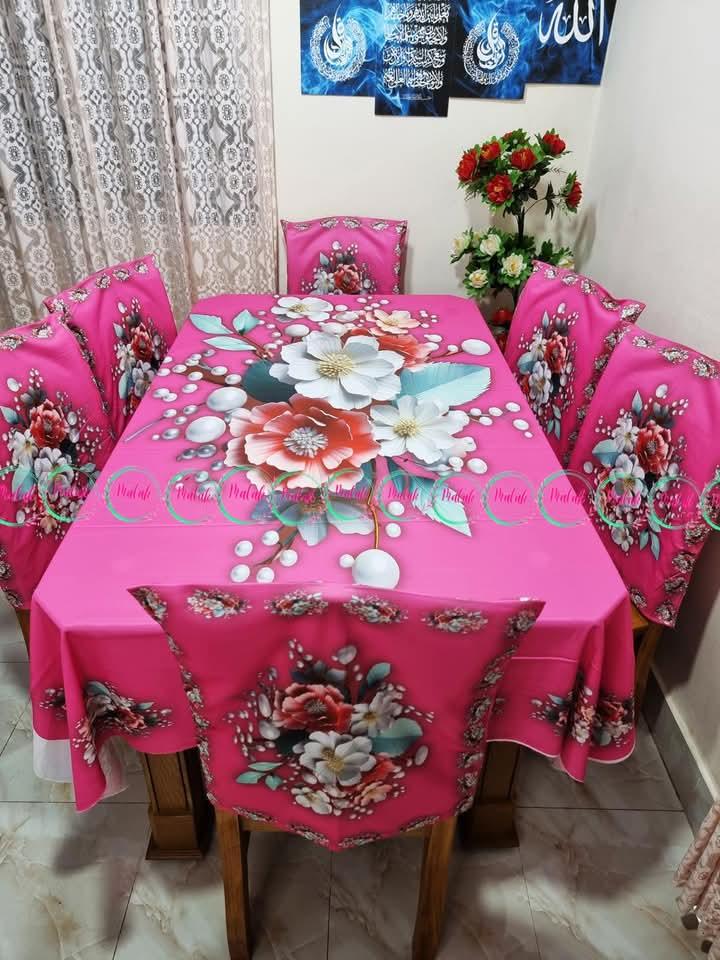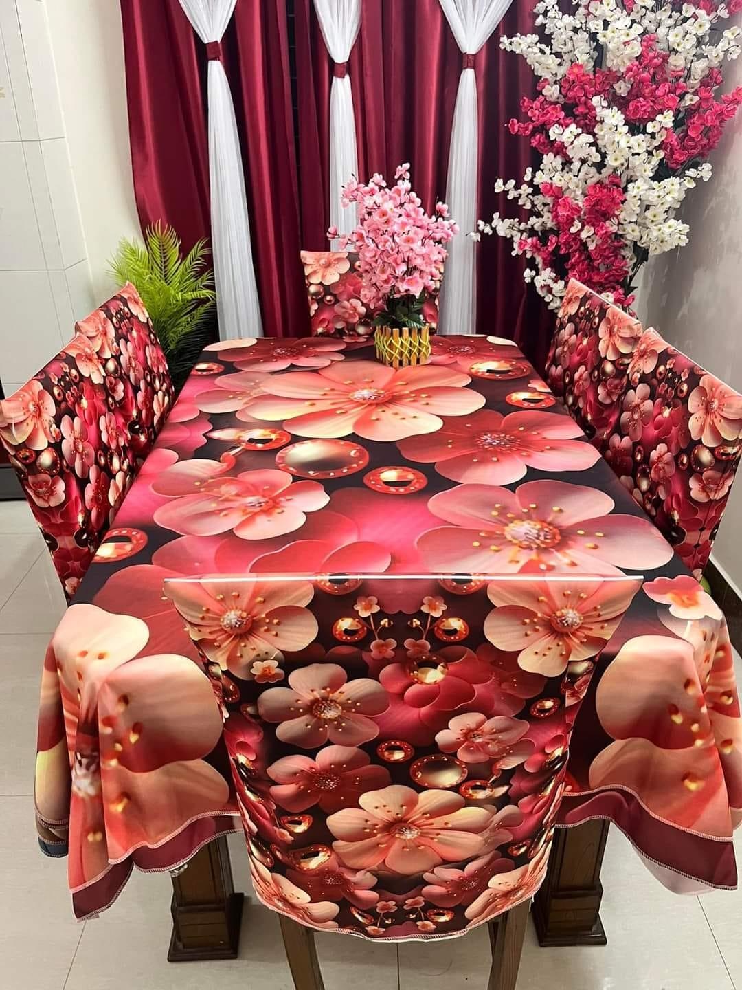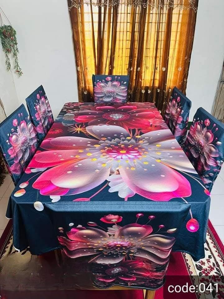 ১ পিস টেবিল ম্যট -(৬০/৮৪ ইঞ্চি-৫/৭ ফিট)৬ পিস চেয়ার কাভার -১৮/২১ ইঞ্চি