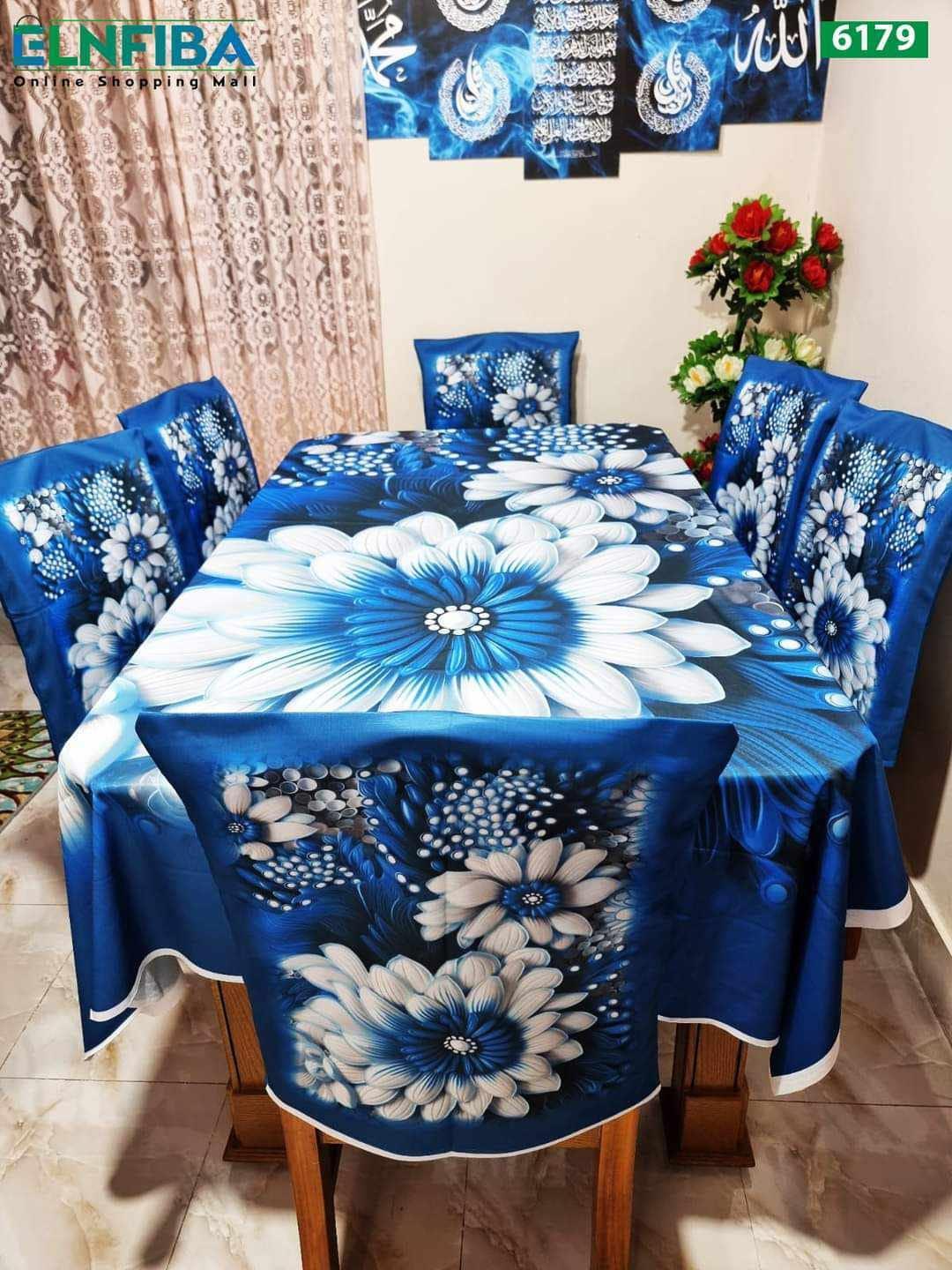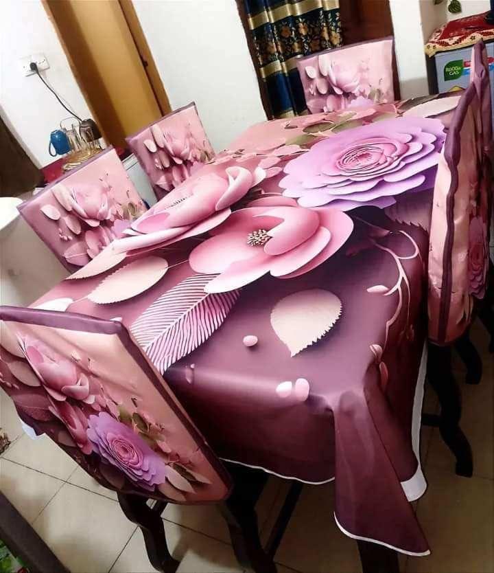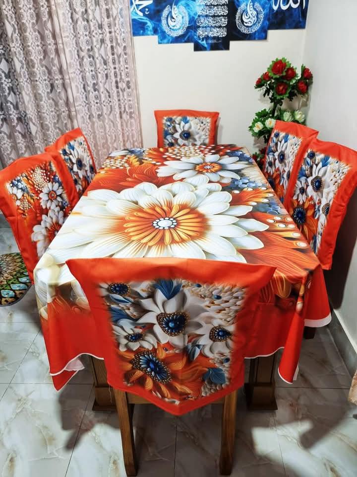 ১ পিস টেবিল ম্যট -(৬০/৮৪ ইঞ্চি-৫/৭ ফিট)৬ পিস চেয়ার কাভার -১৮/২১ ইঞ্চি