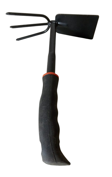 এক পাশে কোদাল ব্লেড, অন্য পাশে তিন দাঁতের ফর্ক
