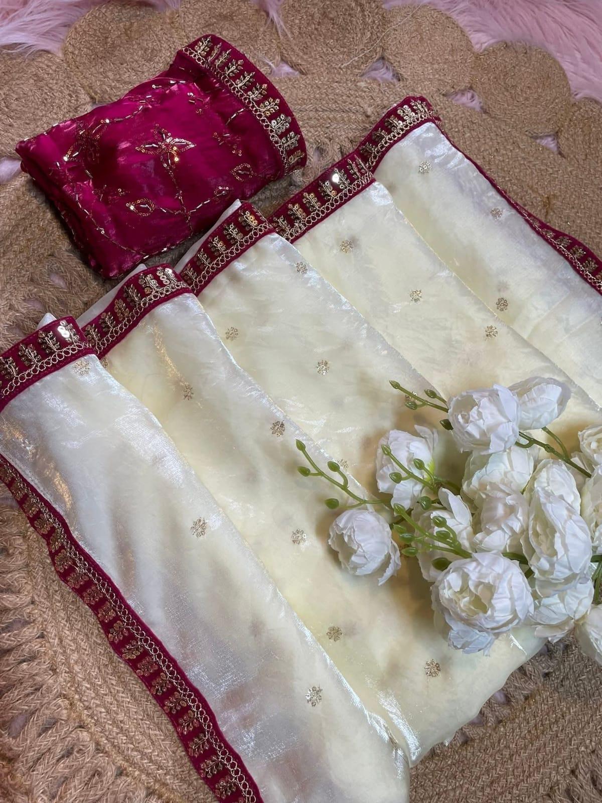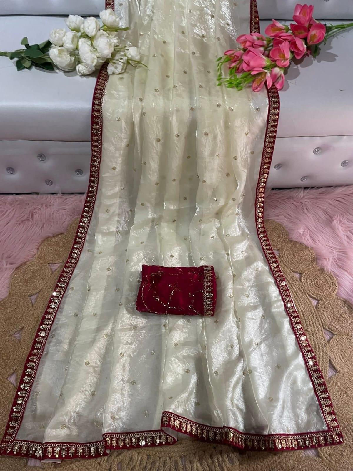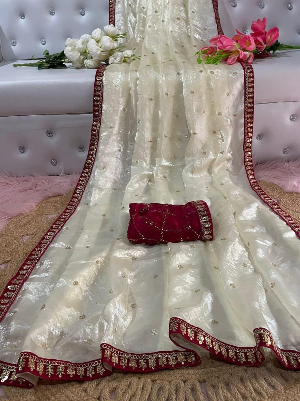 অরজিনাল জিম্মি চু এর উপর সেকুয়েন্স কাজ করা শাড়ি।