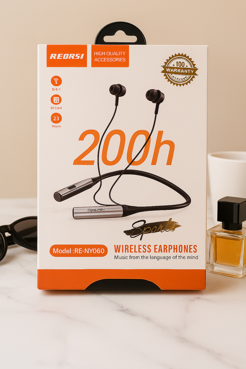 Recrsi RE-NY060 নেকব্যান্ড হেডফোনটি দীর্ঘ 200 ঘণ্টা স্ট্যান্ডবাই টাইম সহ আসে, যা আপনাকে লম্বা সময় ব্যবহার উপযোগী ব্যাকআপ দেয়। এতে ব্লুটুথ 5.3 ব্যবহার করা হয়েছে এবং মেমরি কার্ড সাপোর্ট রয়েছে, ফলে আপনি ভ্রমণ, কাজ বা ব্যায়ামের সময় সহজেই গান উপভোগ করতে পারবেন।