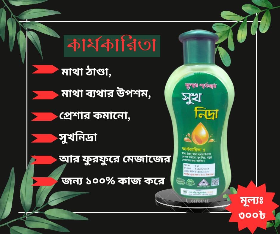 🧴 সুখ নিদ্রা হেয়ার অয়েল শুধু মাথায় ব্যবহার করলেই পাবেন—